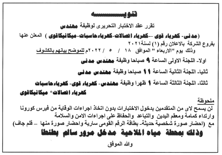 وظائف شركة مياة الشرب والصرف الصحى بالغربية